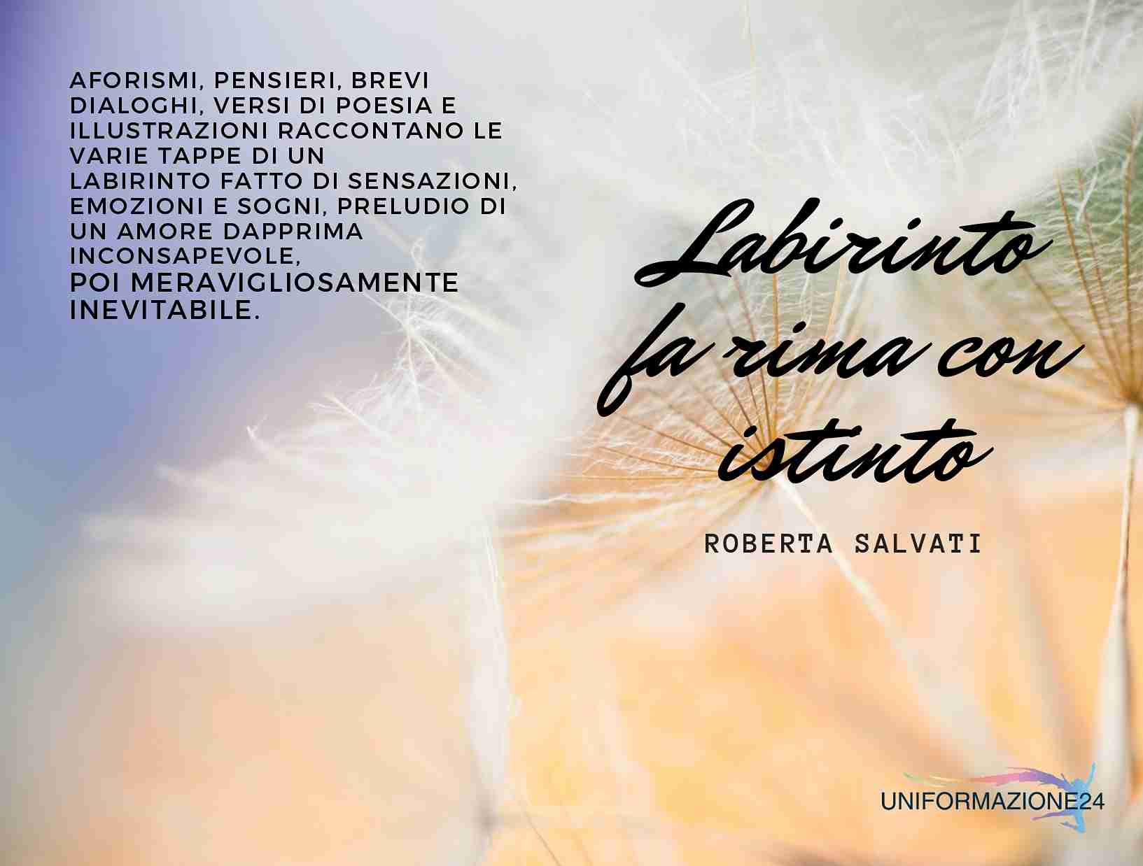 Finalista al Festival della Scrittura di Venezia 2019, "Labirinto fa rima con istinto" è il romanzo firmato da Roberta Salvati, edito da Uniformazione 24 Edizioni, con la prefazione di Alessandro Esposito e le illustrazioni di Sara Manna. Il libro nasce dall'intuizione simbolica della regina di cuori: la carta, infatti, ispira una narrazione d'amore intensa e ineluttabile. Gli undici capitoli del romanzo si sviluppano come le fasi di un labirinto emotivo, in cui il lettore è guidato attraverso sensazioni, desideri e ostacoli, con una struttura narrativa che riflette un percorso interiore più che geografico. Aforismi, pensieri, brevi dialoghi, versi di poesia accompagnano il pubblico nell'esperienza. Anche le illustrazioni sono parte integrante e imprescindibile del racconto, come sottolineato dallo stesso editore; disegno e parola si incontrano e si completano, dando vita a un'opera dal forte impatto visivo ed emotivo.